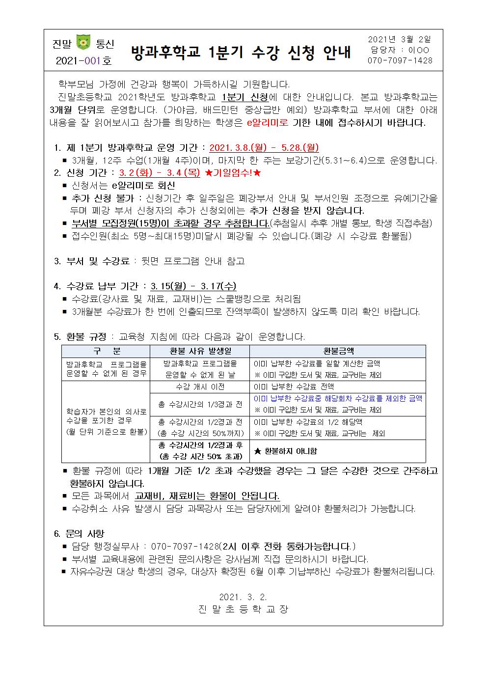 2021Çг⵵ 1ºÐ±â ¹æ°úÈÄÇб³ ½Åû¾È³»