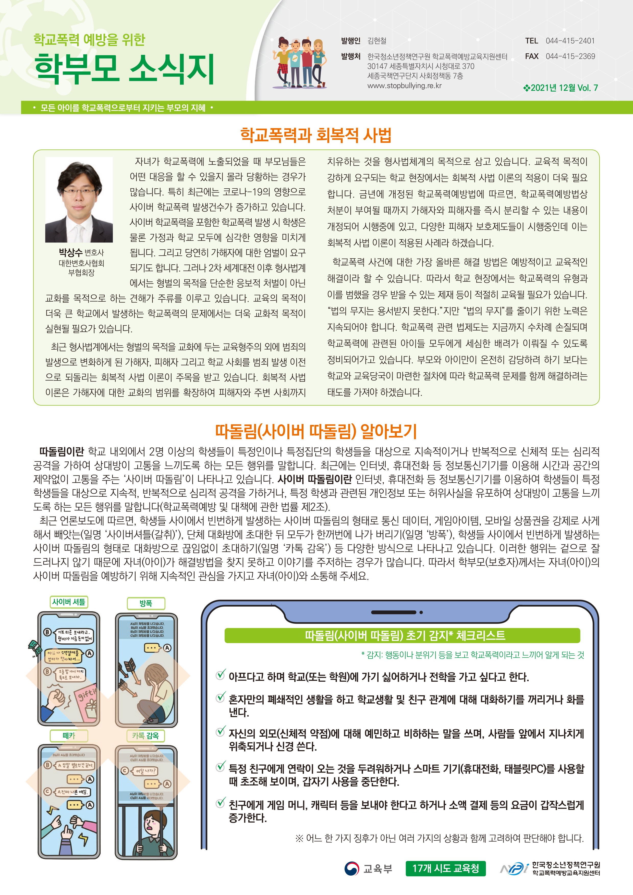 [ºÙÀÓ1-1] û¼Ò³âÁ¤Ã¥¿¬±¸¿ø_Çб³Æø·Â ¿¹¹æÀ» À§ÇÑ Çкθð ¼Ò½ÄÁö vol.7-1.jpg (1.54MB)