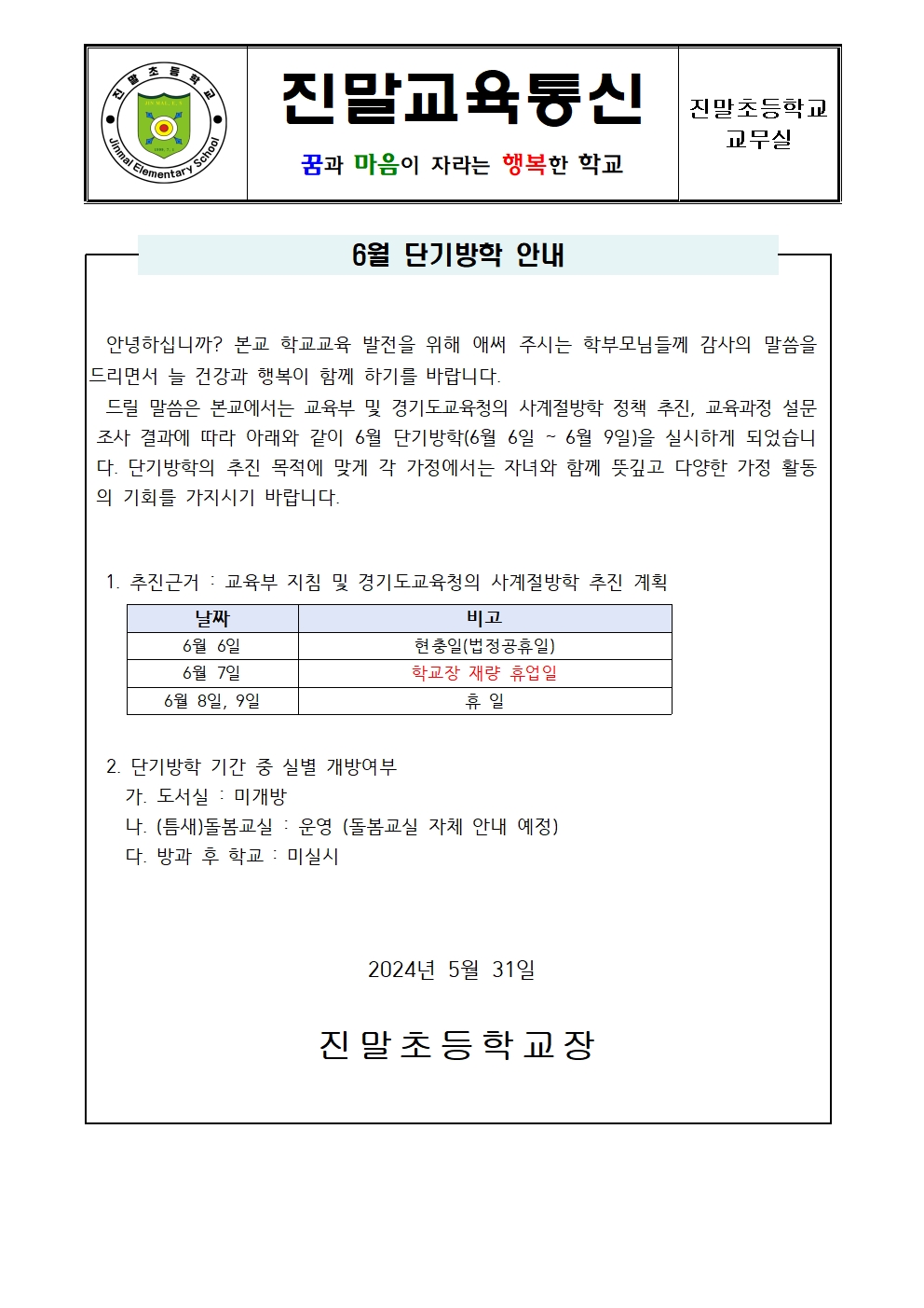 6¿ù´Ü±â¹æÇоȳ»(6/6~6/9)